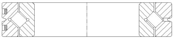 SX系列型號結(jié)構(gòu)與RB系列類似,外環(huán)是兩分割的結(jié)構(gòu),通過三個(gè)彈簧卡環(huán)連接,內(nèi)環(huán)一體設(shè)計(jì),適用于要求內(nèi)環(huán)旋轉(zhuǎn)精度高的地方。