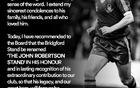為紀念俱樂部傳奇,森林老板已提議用羅伯遜名字命名看臺
