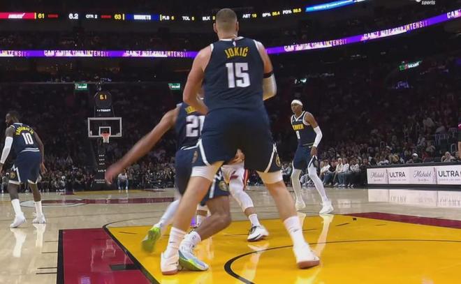 約基奇防守中遭隊友瓊斯誤傷,瓊斯踩到約基奇的腳,使得后者的膝蓋扭轉(zhuǎn)。