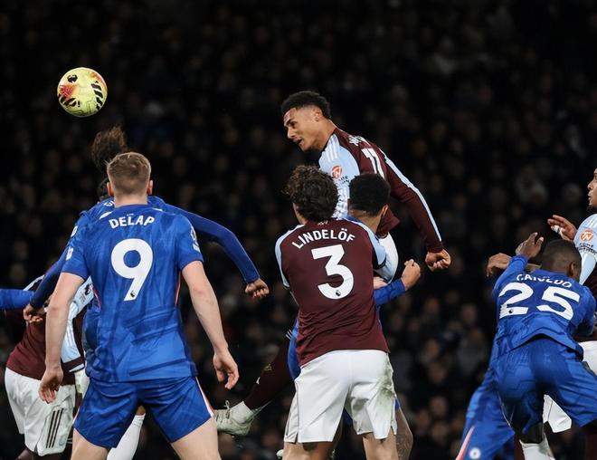 第66分鐘,桑喬中路推進組織反擊,羅杰斯左側接應后再次分球,馬特森小角度勁射被桑切斯單掌封出底線;第69分鐘,卡什右路挑傳,又是沃特金斯連停帶過低射被桑切斯化解;第72分鐘,羅杰斯直接任意球攻門繞過人墻急速下墜擊中球網(wǎng)。在對手的持續(xù)壓迫下,切爾西后防線壓力驟增,丟球也只是時間問題;第84分鐘,蒂勒曼斯開出角球,沃特金斯頂出強力頭球上演梅開二度,1:2!