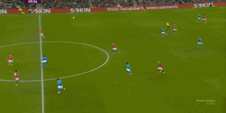也能通過(guò)捕捉曼聯(lián)的失誤,吃掉庫(kù)尼亞之后,從右路繼續(xù)送出傳中: